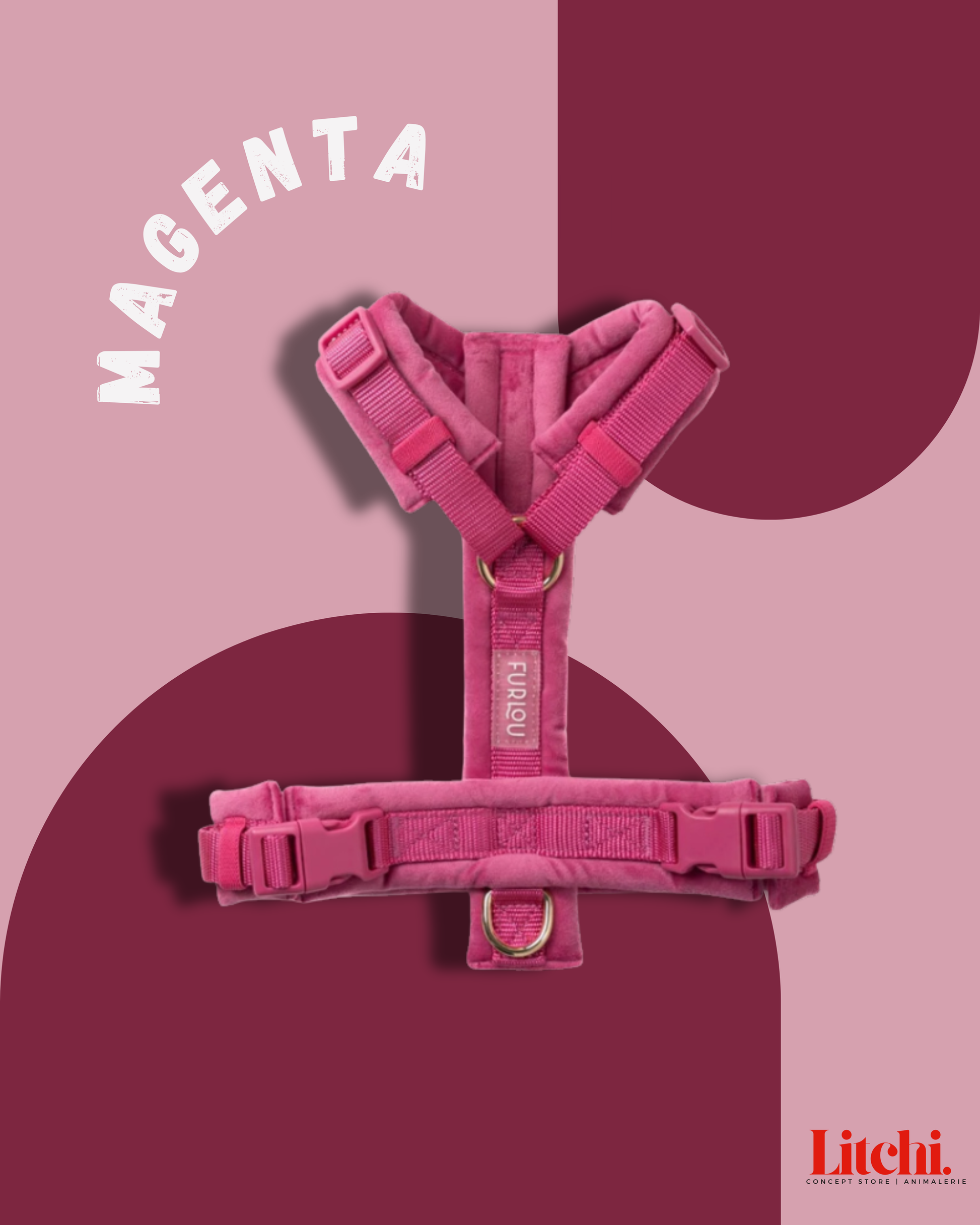 Inspiré du best-seller de la marque Furlou, ce harnais pour chien en velours allie confort, sécurité et élégance. Son design ergonomique, sa doublure rembourrée et respirante ainsi que ses quatre points de réglage en font un accessoire incontournable. Le velours apporte une touche sophistiquée, sublimée par des détails dorés pour un style chic en toute circonstance.