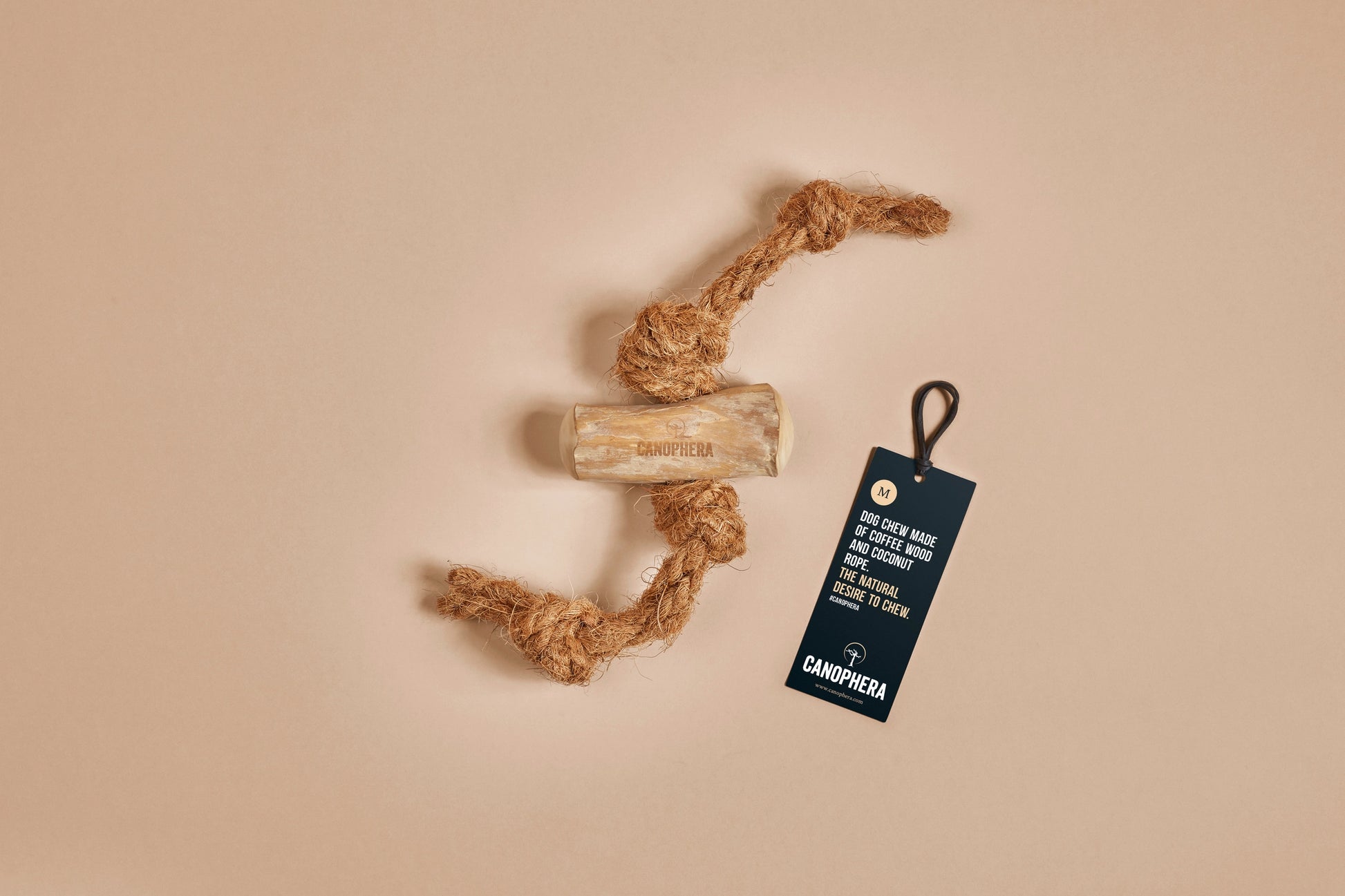 Jouet à mâcher pour chien en bois de café & corde coco 100 % naturelle.