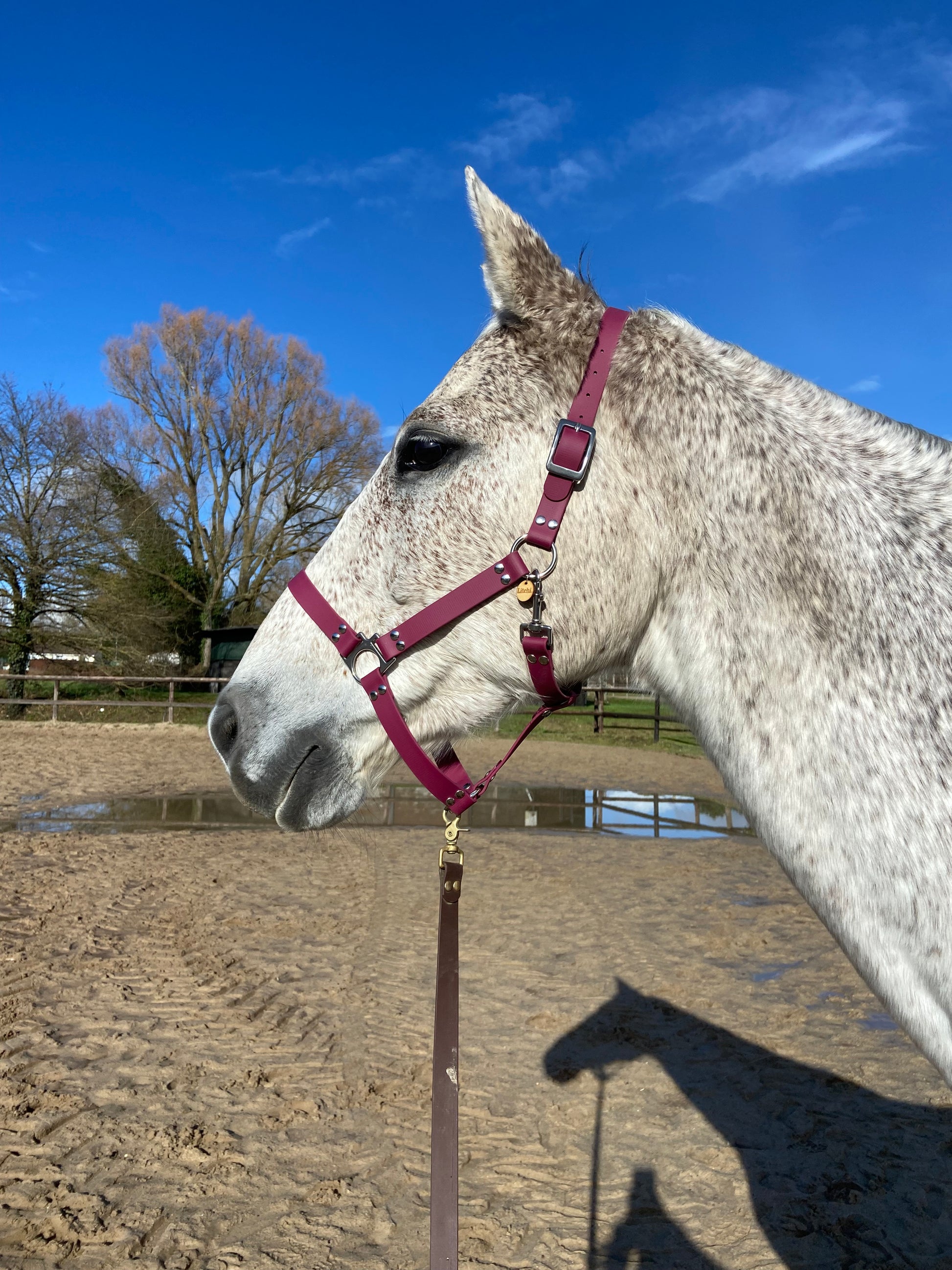 Alliez style et durabilité avec notre licol en biothane aubergine, rehaussé d’une bouclerie argentée en acier inoxydable. Conçu pour les cavaliers exigeants, ce licol allie résistance, confort et raffinement.