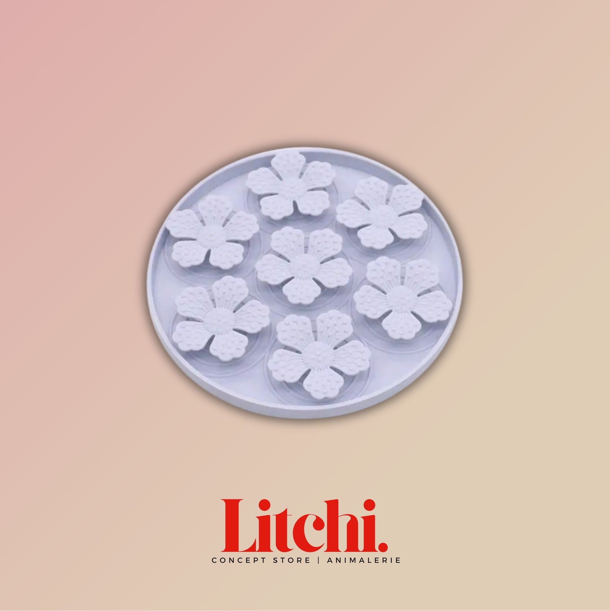 Offrez à votre compagnon à quatre pattes un moment de plaisir et de détente avec notre tapis de léchage en forme de fleurs ! Conçu pour stimuler l’esprit de votre animal tout en réduisant son stress, ce tapis est idéal pour ralentir la prise de nourriture, occuper votre animal, ou simplement lui offrir un moment de gourmandise.