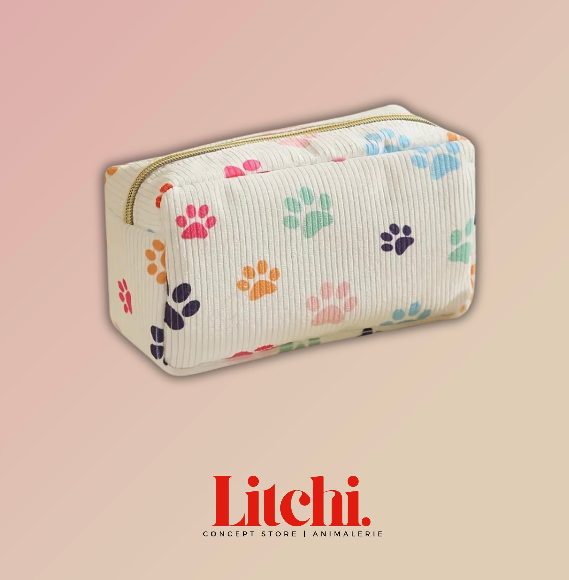Découvrez notre trousse de toilette en tissu, à motifs pattes de chiens.